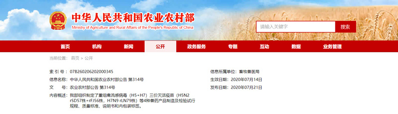 信息來源:中華人民共和國農(nóng)業(yè)農(nóng)村部公告 第314號