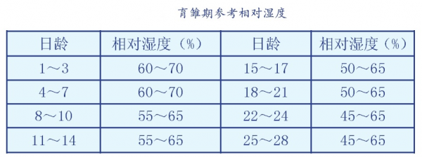 (2)育雛期間的參考濕度: